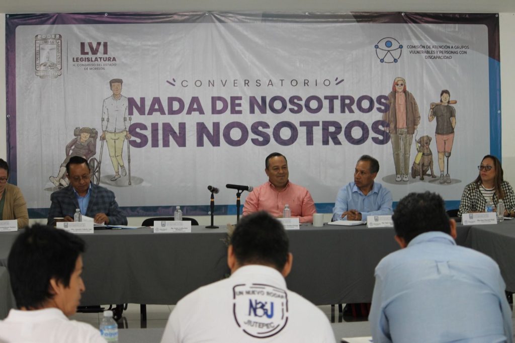 Cuernavaca, Morelos; 24 de octubre del 2024.-Al inaugurar el conversatorio “Nada de Nosotros Sin Nosotros”, el diputado Alberto Sánchez Ortega, presidente de la Comisión de Atención a Grupos Vulnerables, Migrantes y Personas con Discapacidad, aseguró que “iniciamos nuestra labor legislativa realmente empeñados en solventar las causas sociales y abatir la brecha de desigualdad asimétrica, el capacitismo y pobreza estructural, que existe entre personas con y sin discapacidad”.