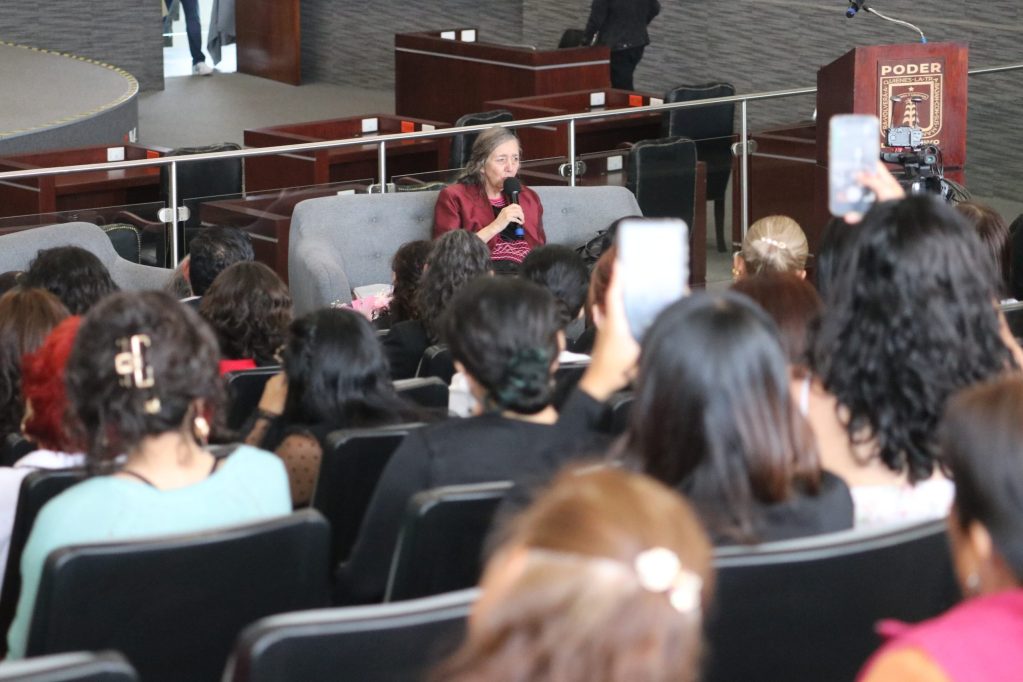Durante la apertura y acompañada de las legisladoras de la Comisión, las diputadas Jazmín Solano López y Nayla Carolina Ruiz Rodríguez, del diputado Isaac Pimentel Mejía, presidente de la Mesa Directiva, así como una nutrida representación de la sociedad civil y el sector jurídico, la legisladora Montes de Oca Montoya destacó la relevancia histórica de la ponente: